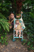 walked around for a couple of hours before we stopped in at Johnny Rockets for dinner. Sevy was miraculously a saint for all of this and didn't even complain in her stroller. We were amazed! Tuesday we went to the San Antonio Zoo and Sevy loved it. She loves monkeys and birds and fish and "ooohhed" at the majority of the animals we saw. They have this great kid area that kids can swim in a river and play in sand and they have a big field to run
